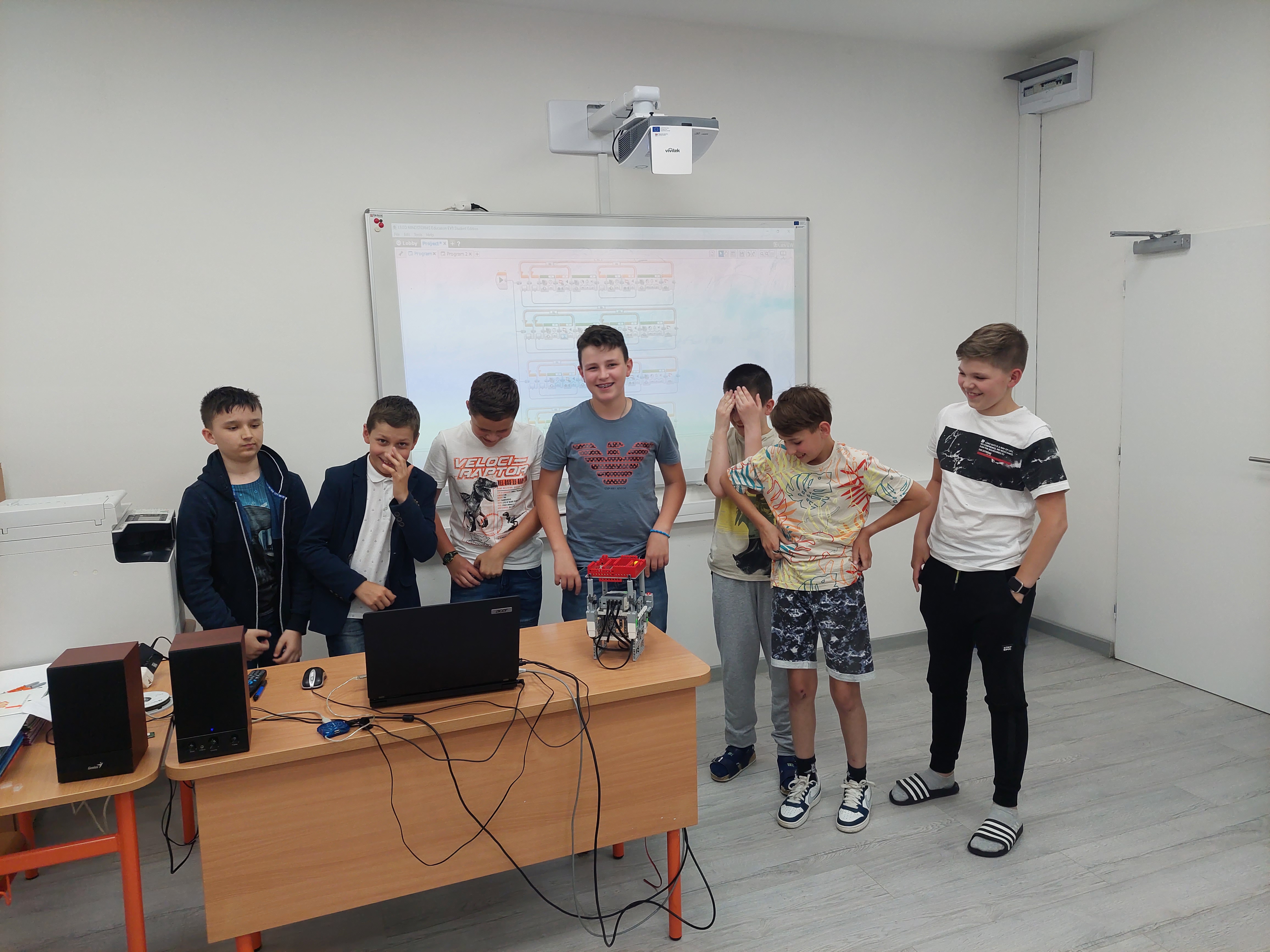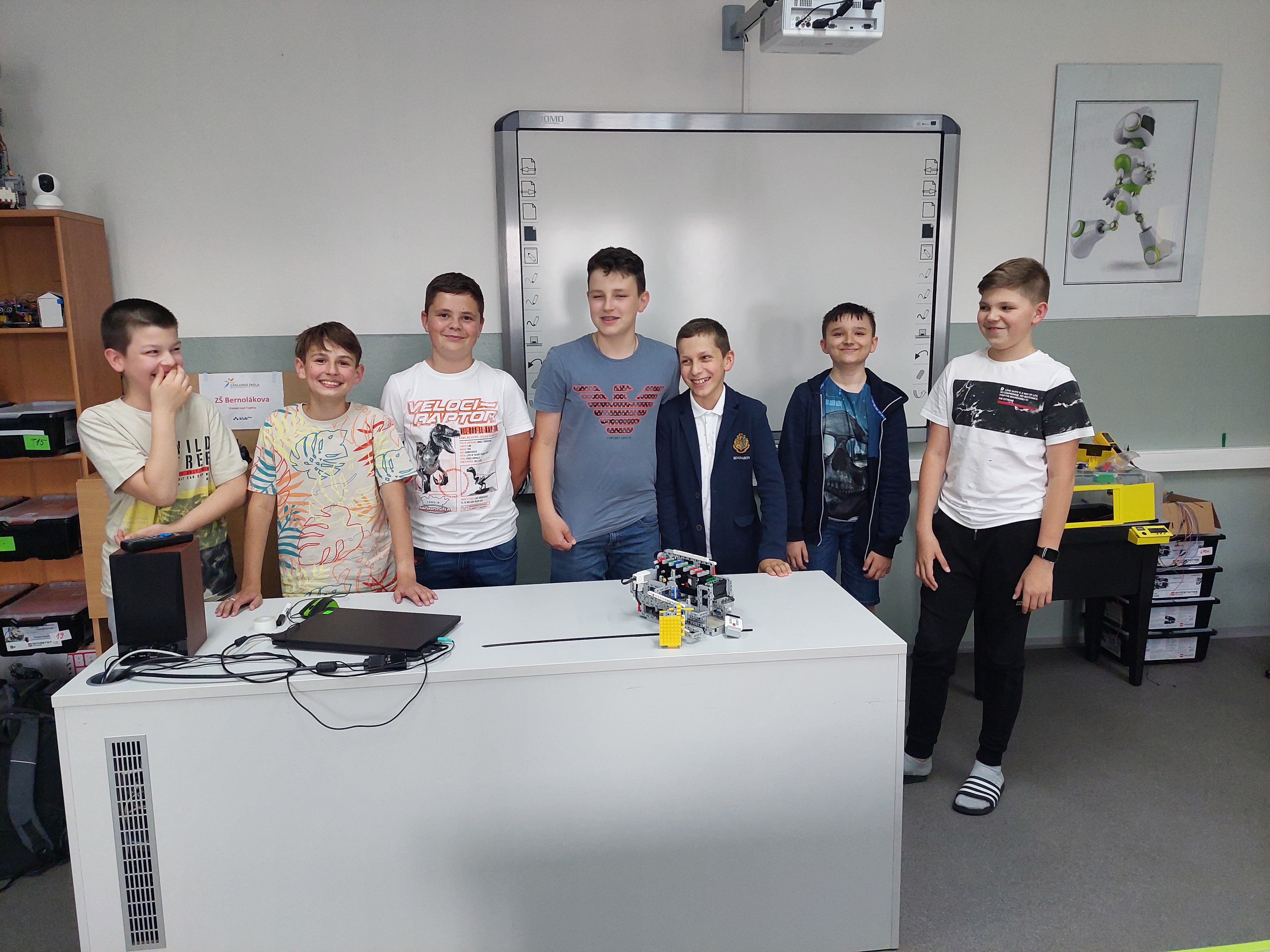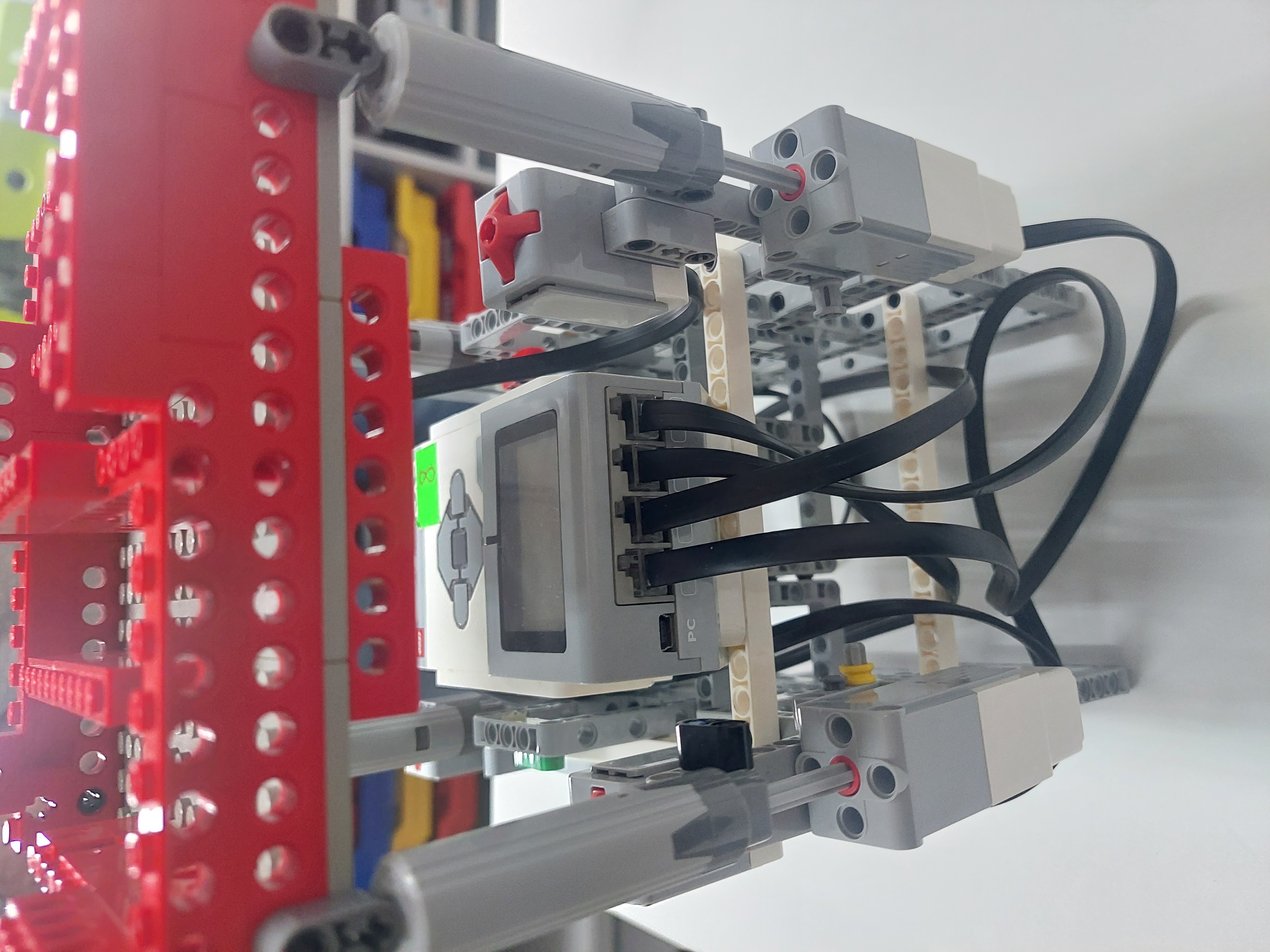 Popis robota: Náš robot slúži na prepravenie guličky z bludiska. Je poháňaný medium servo motormi ktoré poháňajú piesty ktoré keď sa vysunú tak naklonia plošinu.
