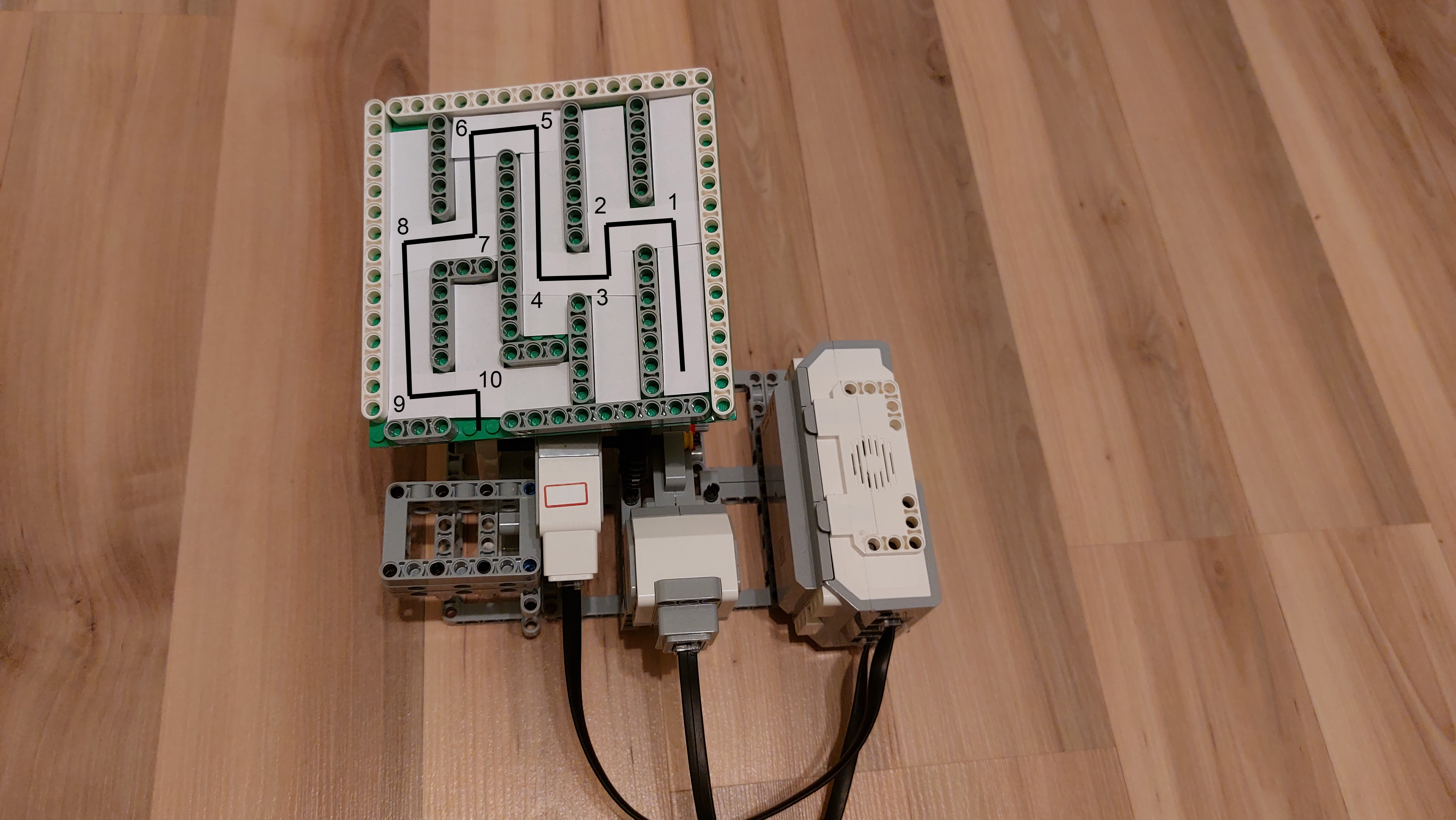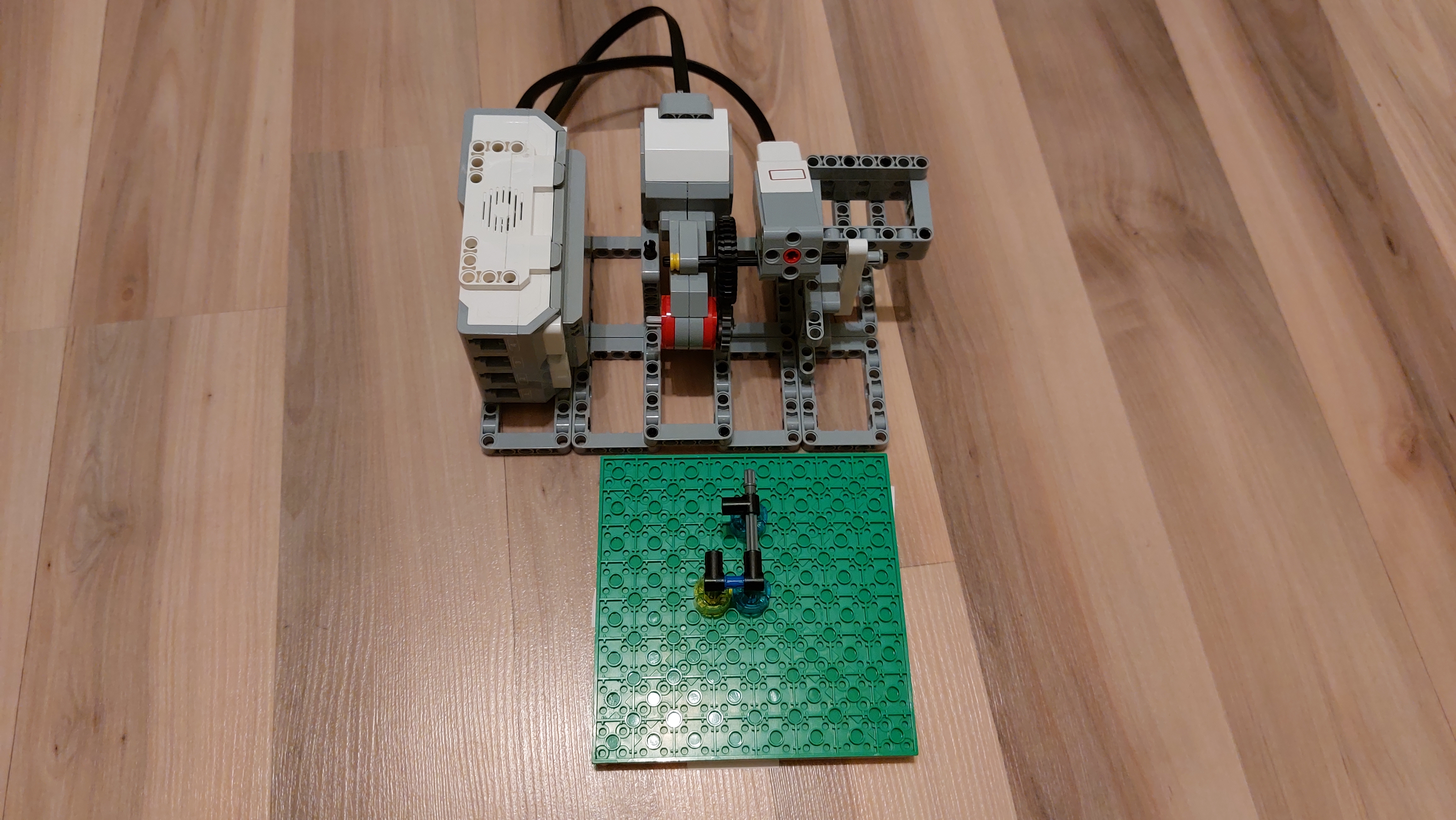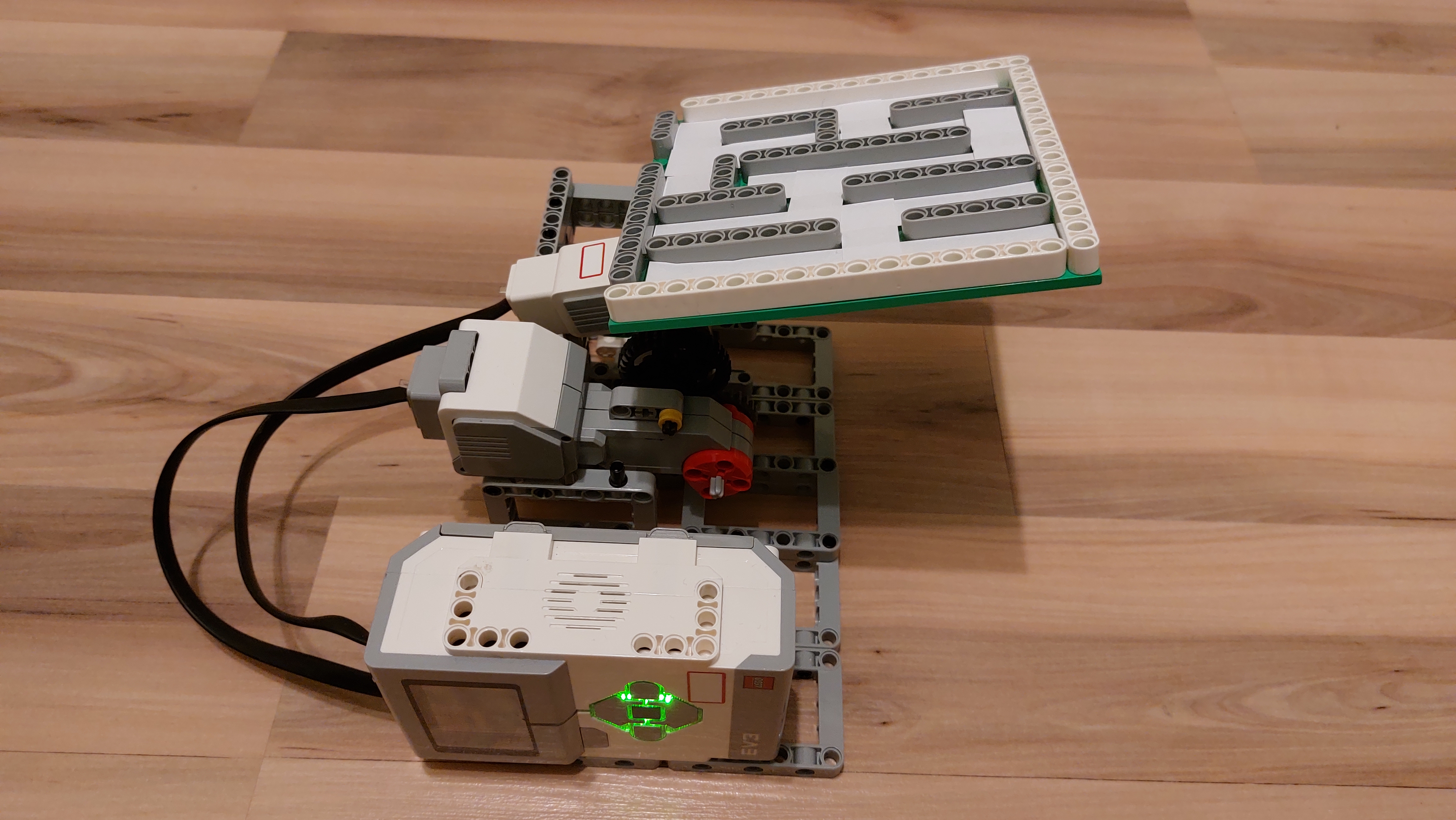 Bludisko je pripojené k malému motoru a ten je pripevnený na veľký motor. To celé je osadené na stabilnej konštrukcii.