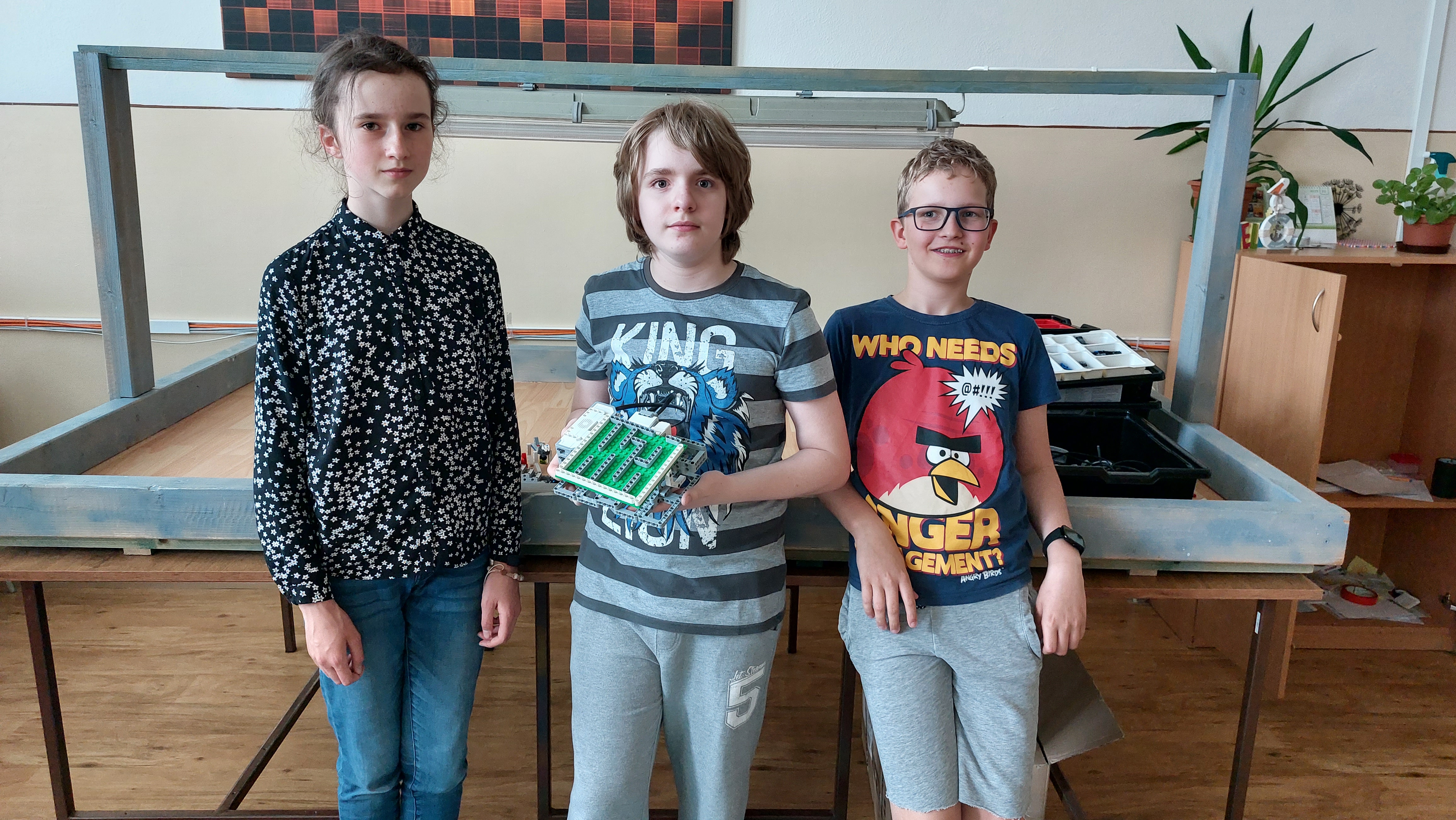1. Paráda! Čistá robota! Zaujímavý mechanizmus. Gratulujem. 2. Naozaj minimalistická konštrukcia, jednoduchšie sa to už asi nedalo spraviť. Netvrdil by som síce, že konštrukcia je stabilná, na to sa príliš kyvoce, ale zadanie ste splnili perfektne. 3. Za úlohu Guľôčkové bludisko získavate 3b. Zostrojili ste pekné riešenie úlohy. 4. Zaujímavý nápad s viac guličkami. Nie som si istá, koľko náklonov vaše bludisko spravilo. Malo spraviť aspoň 8, no vyriešili ste úlohu pekne. Aj viacero pokusov ste natočili, takže fungovalo spoľahlivo. super. Dúfam, že sa vám tento rok páčili úlohy a budete súťažiť aj budúci rok :)
