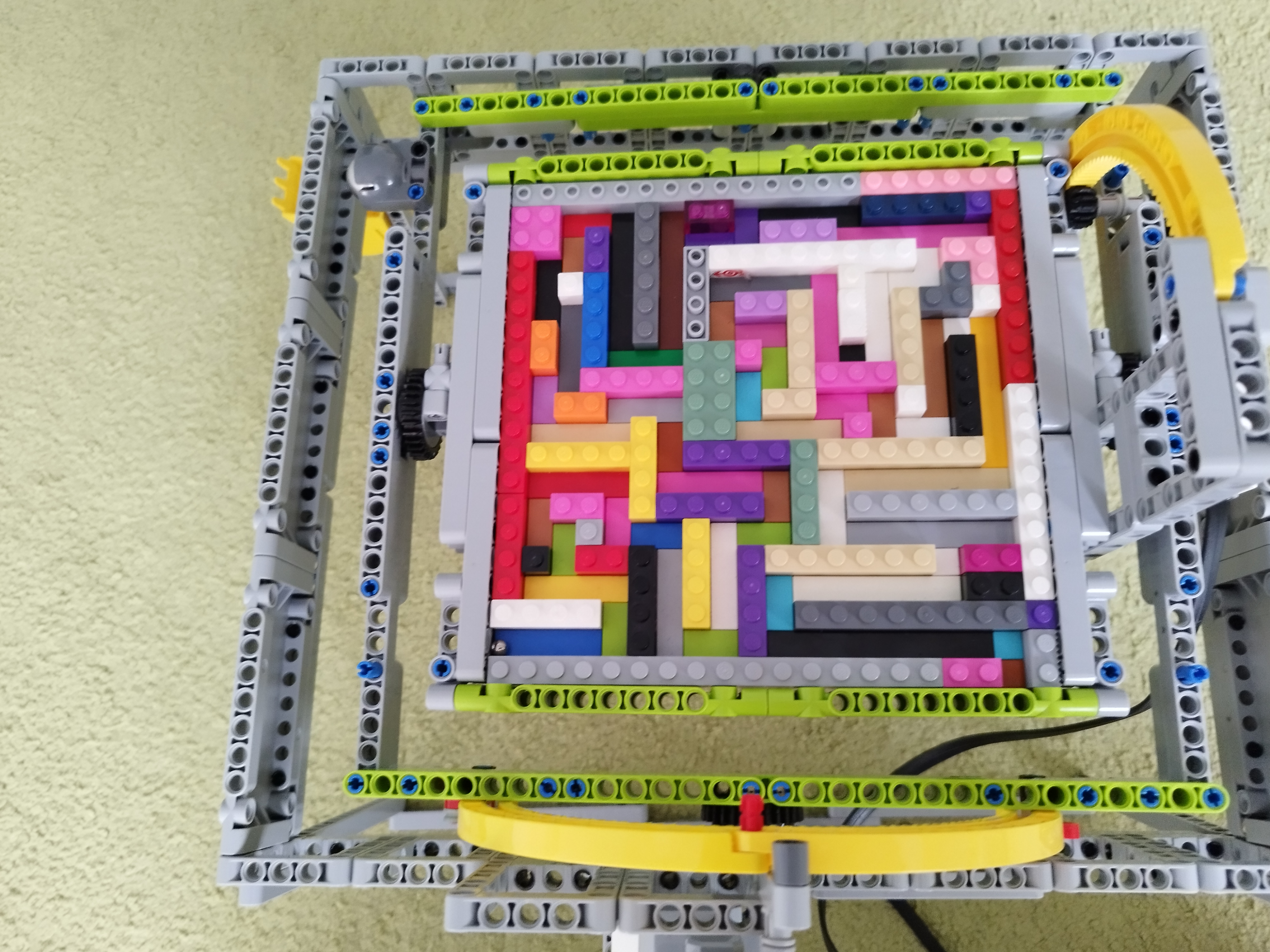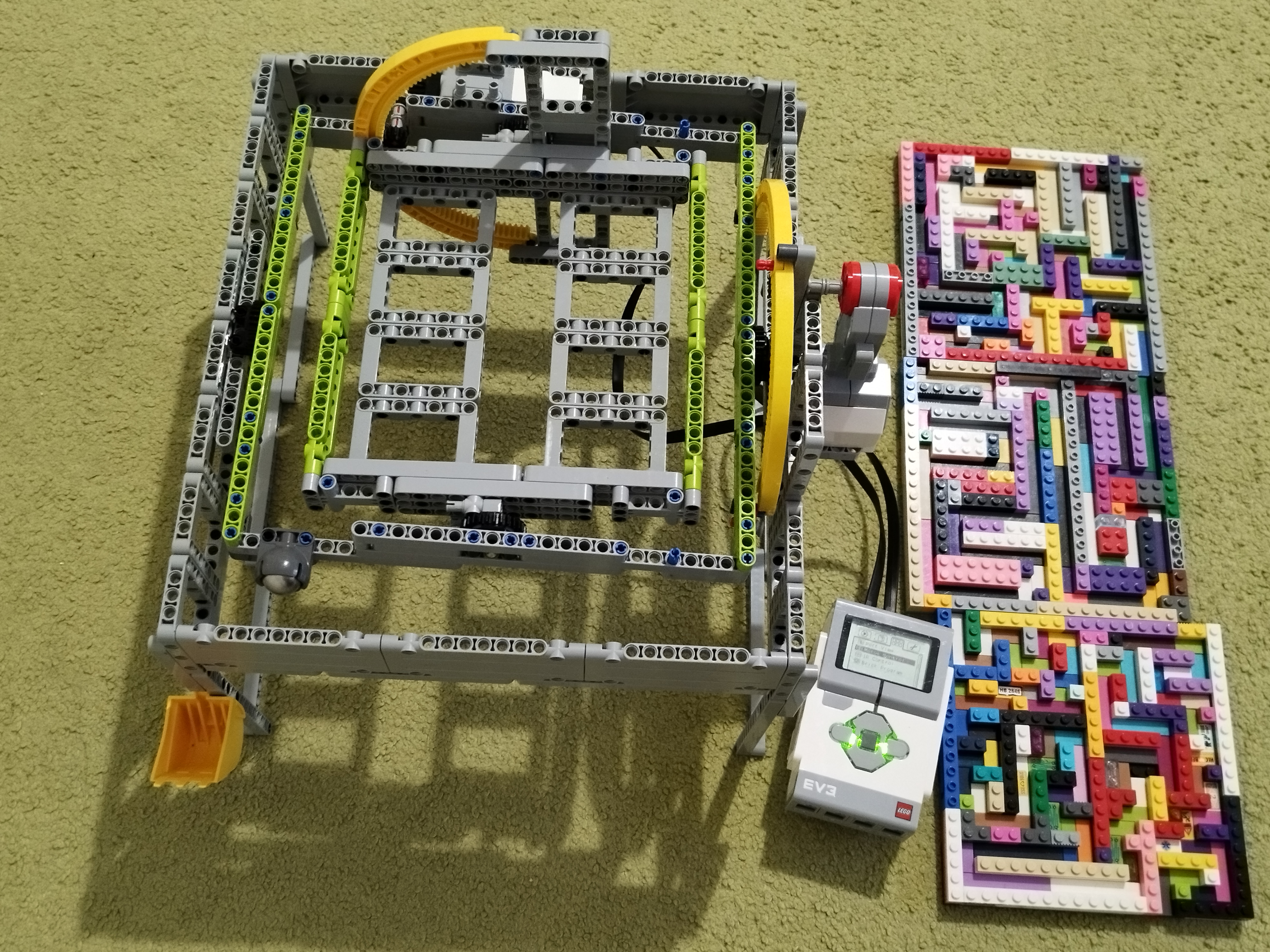 Najprv sme si skonštruovali tri rôzne bludiská každé na ploche 20 x 20 LEGO dobiek. Potom sme vytvorili stroj, ktorý dokáže natáčať plošinu s bludisko všetkými smermi. Využíva na to dva motory. Tie dokážu natáčať plošinu o 180°v jednom smere a o 180°v druhom smere. Vďaka tomu robot dokáže bludisko vyriešiť.