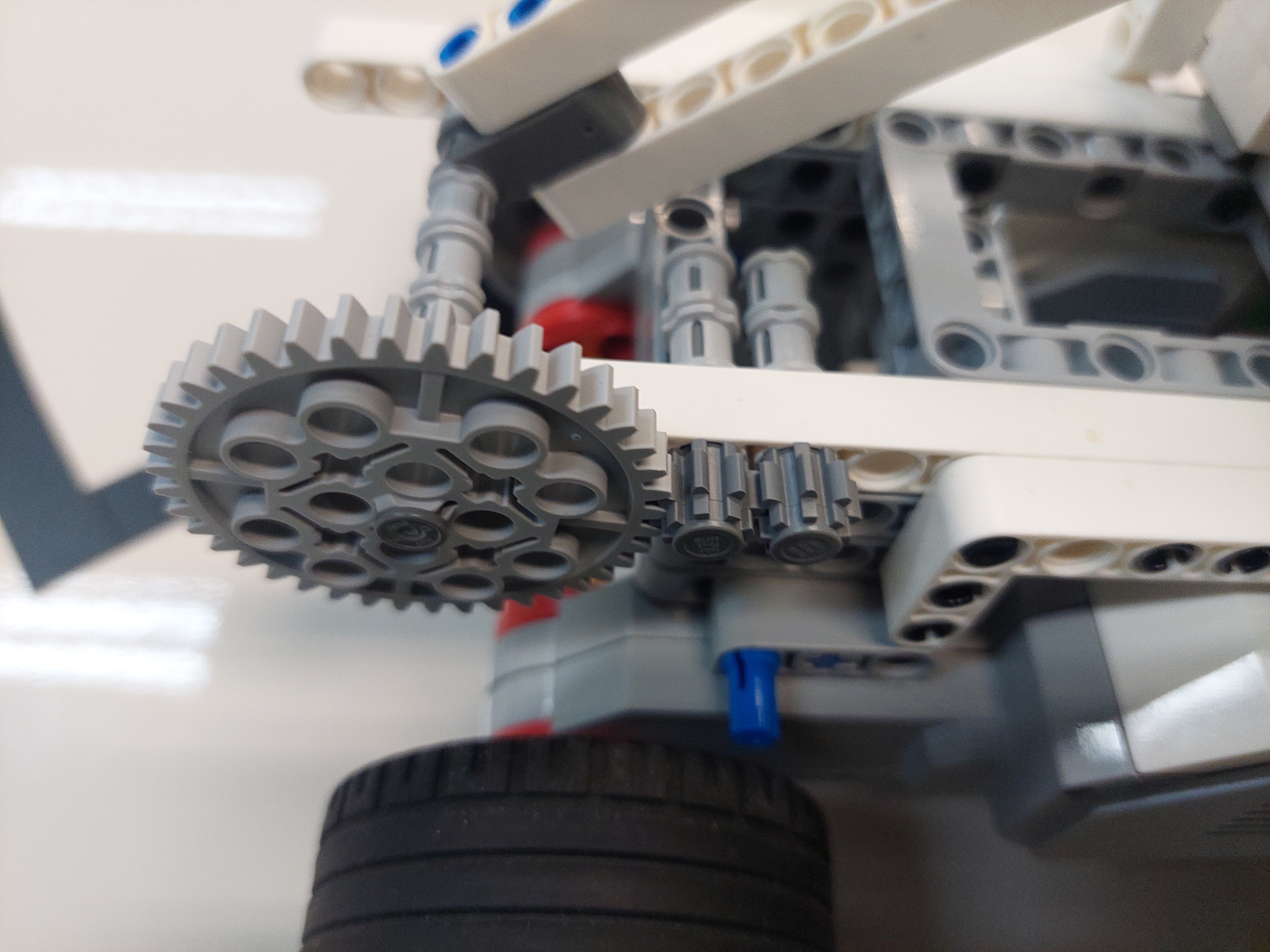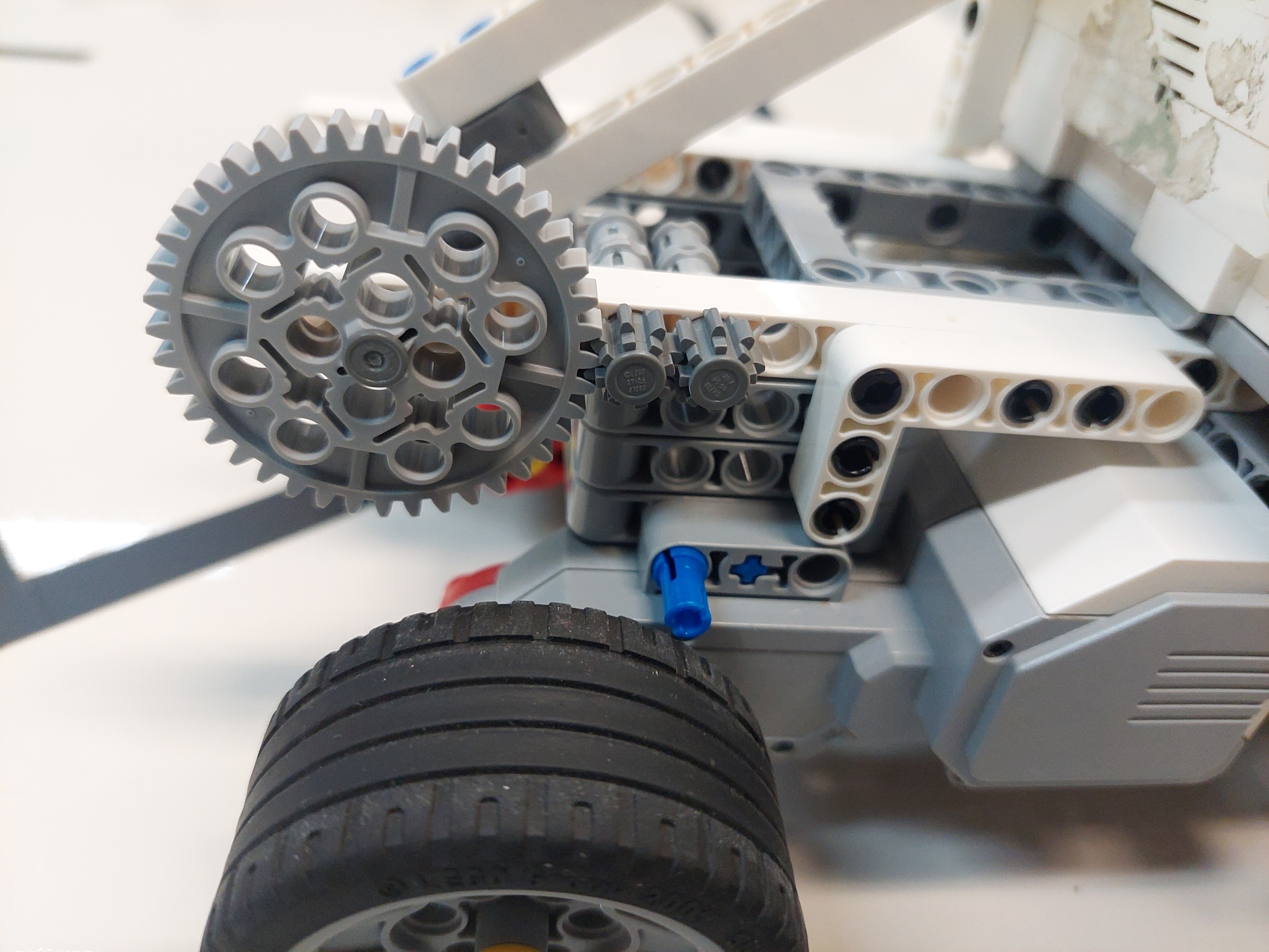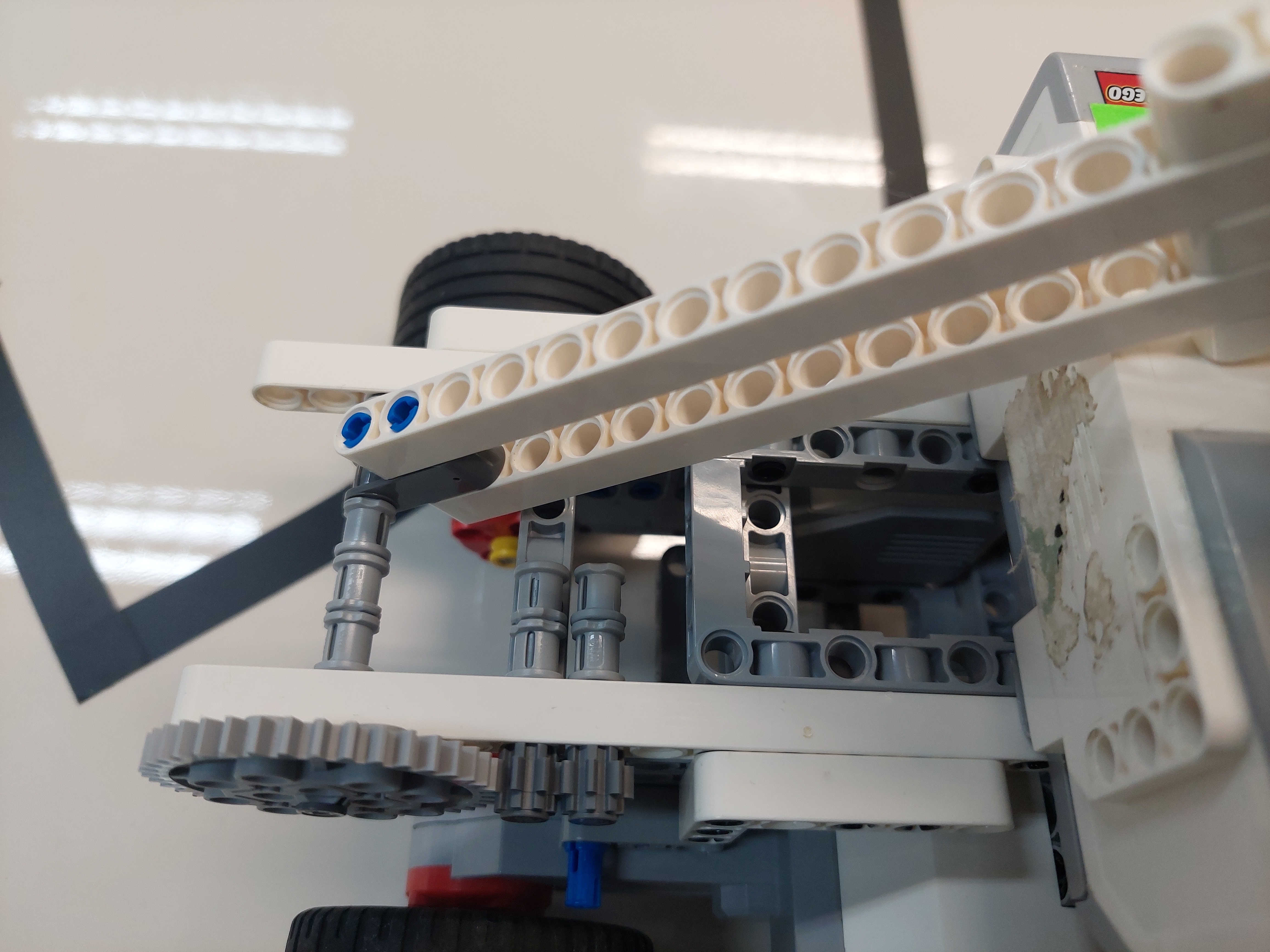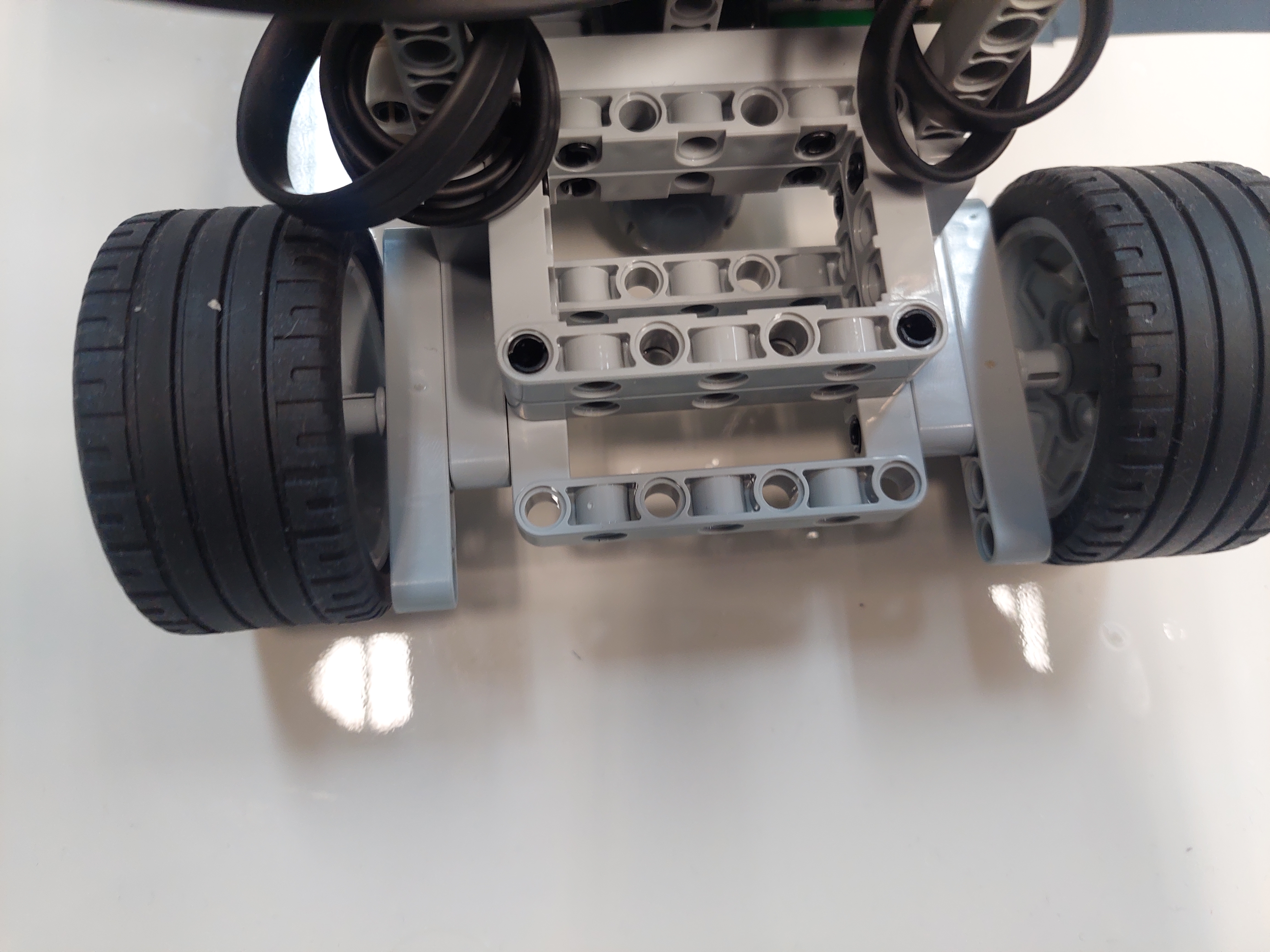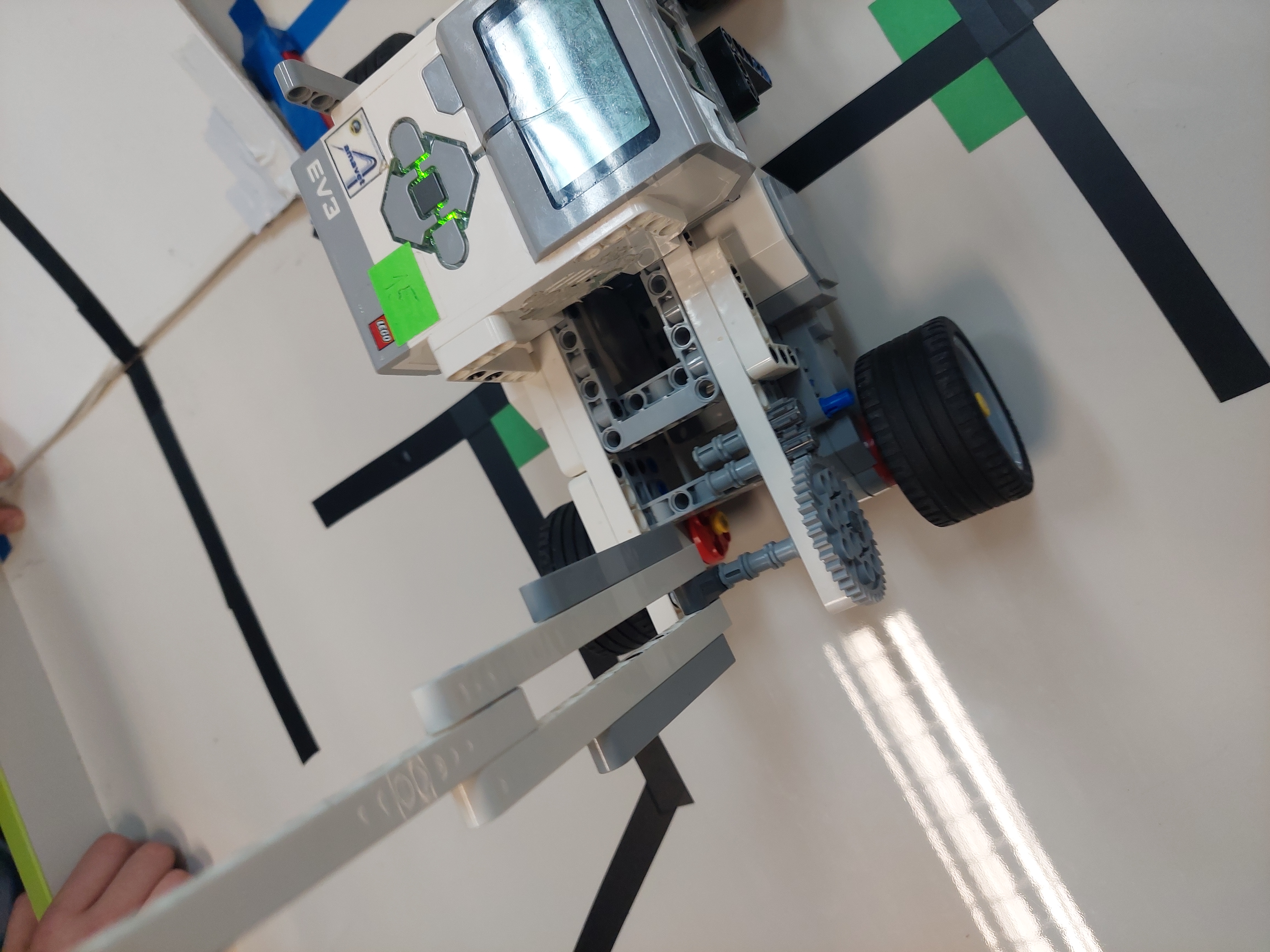 Krok2: podľa zistenia sme už len vytvorili jednoduchého robota a pripojili sme paličku z Lego kociek. Menili sme rýchlosť pohybu robota a zvyšovali trenie paličky o robota. Veľmi sa nám nedarilo.