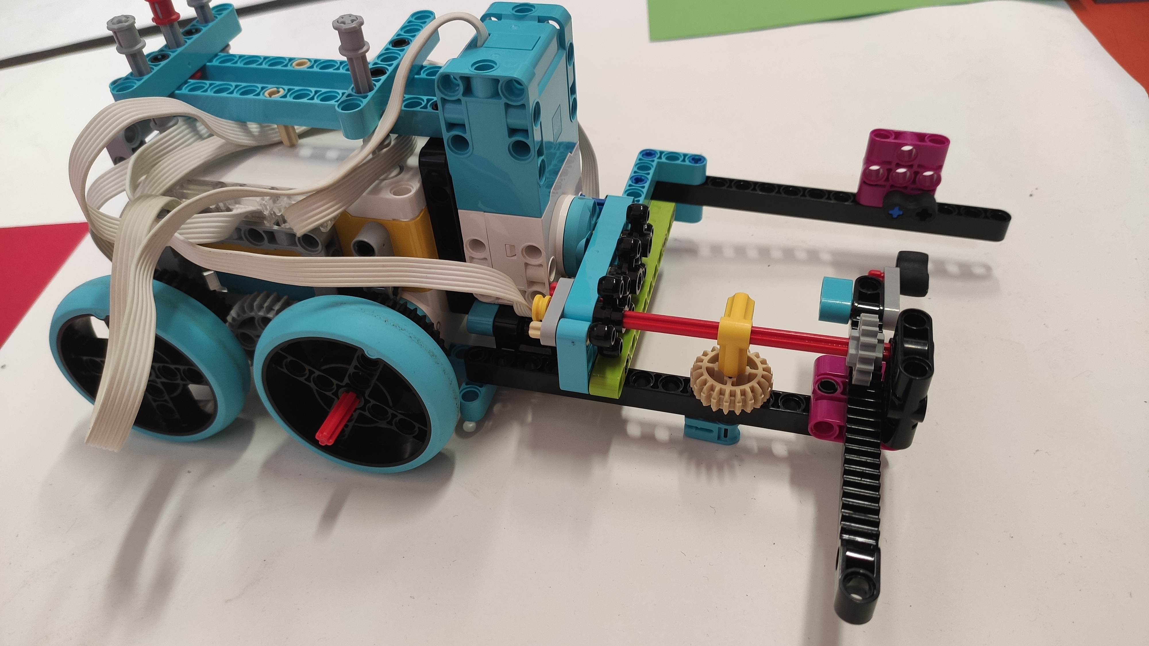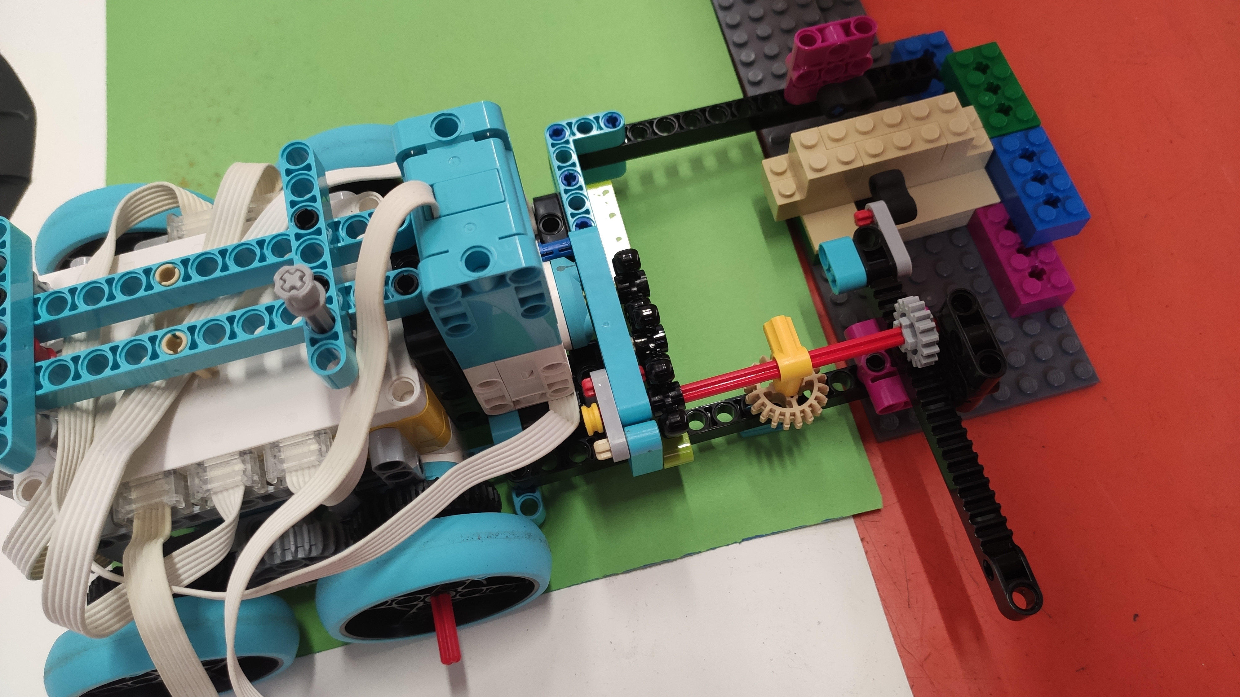 Vytvorili sme zariadenie na nakupovanie za nás. Keď program zapneme tak robotovi ukážeme farebný papier - čo má ísť kúpiť: jablko, chleba alebo mlieko. Do obchodu (zeleý papier) pôjde tak, že bude prenasledovať čiernu čiaru (používa na to 2 farebné senzory). Keď príde do obchodu, tak zoberie to, čo sme mu na začiatku ukázali - podľa uloženej farby. Po nákup sa otočí, zodvihne ho a vráti sa po čiare naspäť na farebný papier.