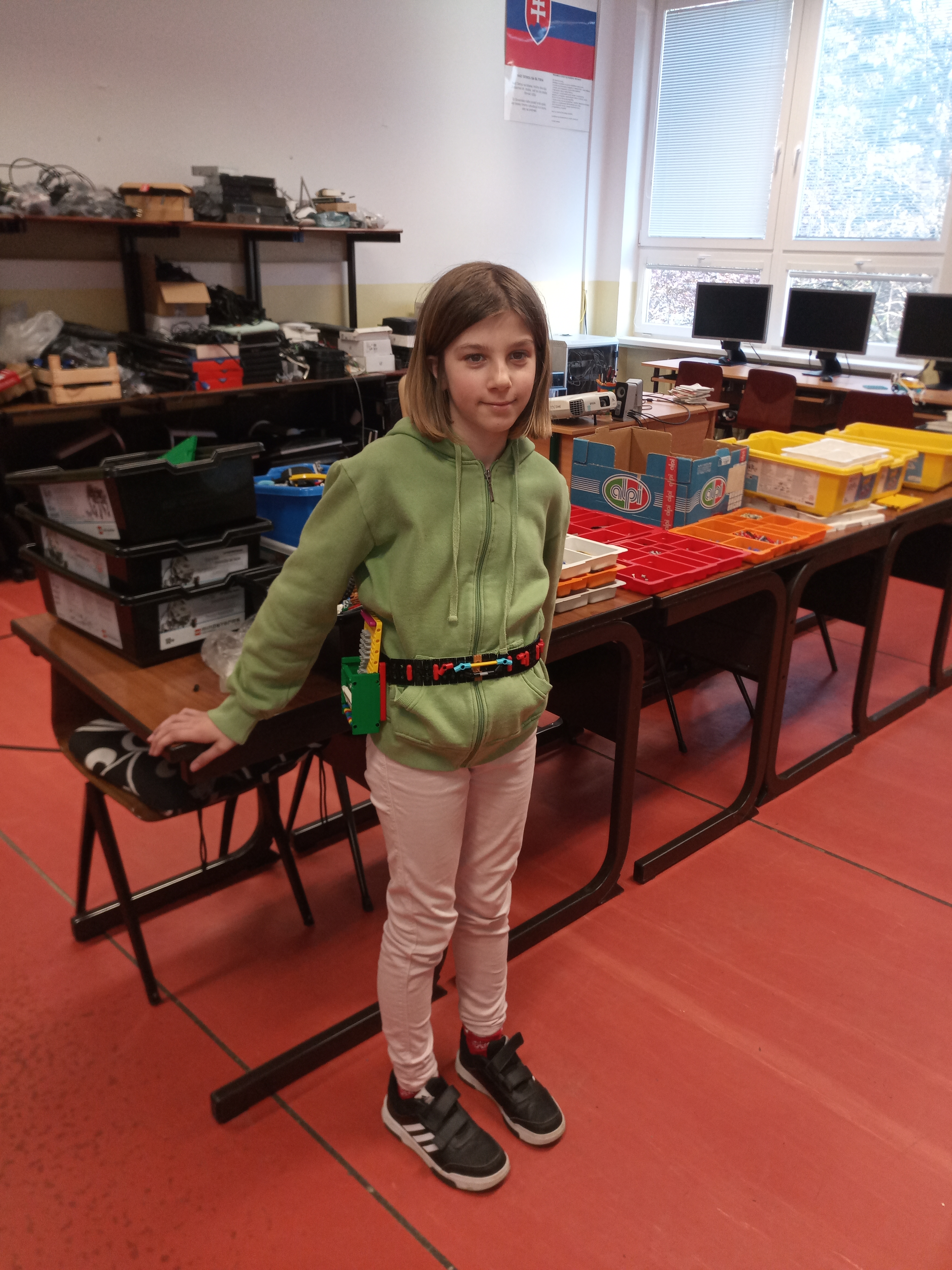 1. Pekné riešenie - robot zaznamená príchody aj odchody, na konci je možné zistiť koľko pracovali, čo nie je celkom to isté ako je napísané v zadaní: "...sa na konci pracovnej zmeny bude dať zistiť, v akom čase každý zo zamestnancov prišiel na pracovisko a odišiel z pracoviska.", ale beriem to tak, že ste to takto zobrazili, aby ste pracovníkovi z personálneho oddelenia ušetrili čas, takže to akceptujem a všetko je fajn. Dobre mienená rada pre kameramana: pred nahrávaním si trochu skontrolovať/nastaviť sveteľné podmienky, aby sa od bieleho habu neodrážala lampa a lepšie by sme videli, čo sa na ňom vypisuje. V tomto prípade sa to ešte dalo prečítať, takže OK, ale musel som si trochu potrápiť zrak. 2. Za úlohu Dochádzkové hodiny získavate 3b. Páči sa mi nápad s farebnými papierikmi pre rozlíšenie zamestnancov. 3. Tak, robot ešte nie je veľmi autonómny a potrebuje pomoc s obsluhou. Zaujímalo by ma, či by mohlo byť poradie aj zamiešané. napríklad že by odišiel ako prvý zelený, či by to fungovalo. Také varianty skúste nabudúce tiež zaznamenať na videjku. 4. Na to, aké obmedzené možnosti má ten displej ste to vymysleli veľmi dobre. Pekné riešenie, poradili ste si s mnohými obmedzeniami. Nesplnili ste však celkom presne zadanie, pretože namiesto času príchodu a odchodu zobrazujete len odpracovanú dobu.