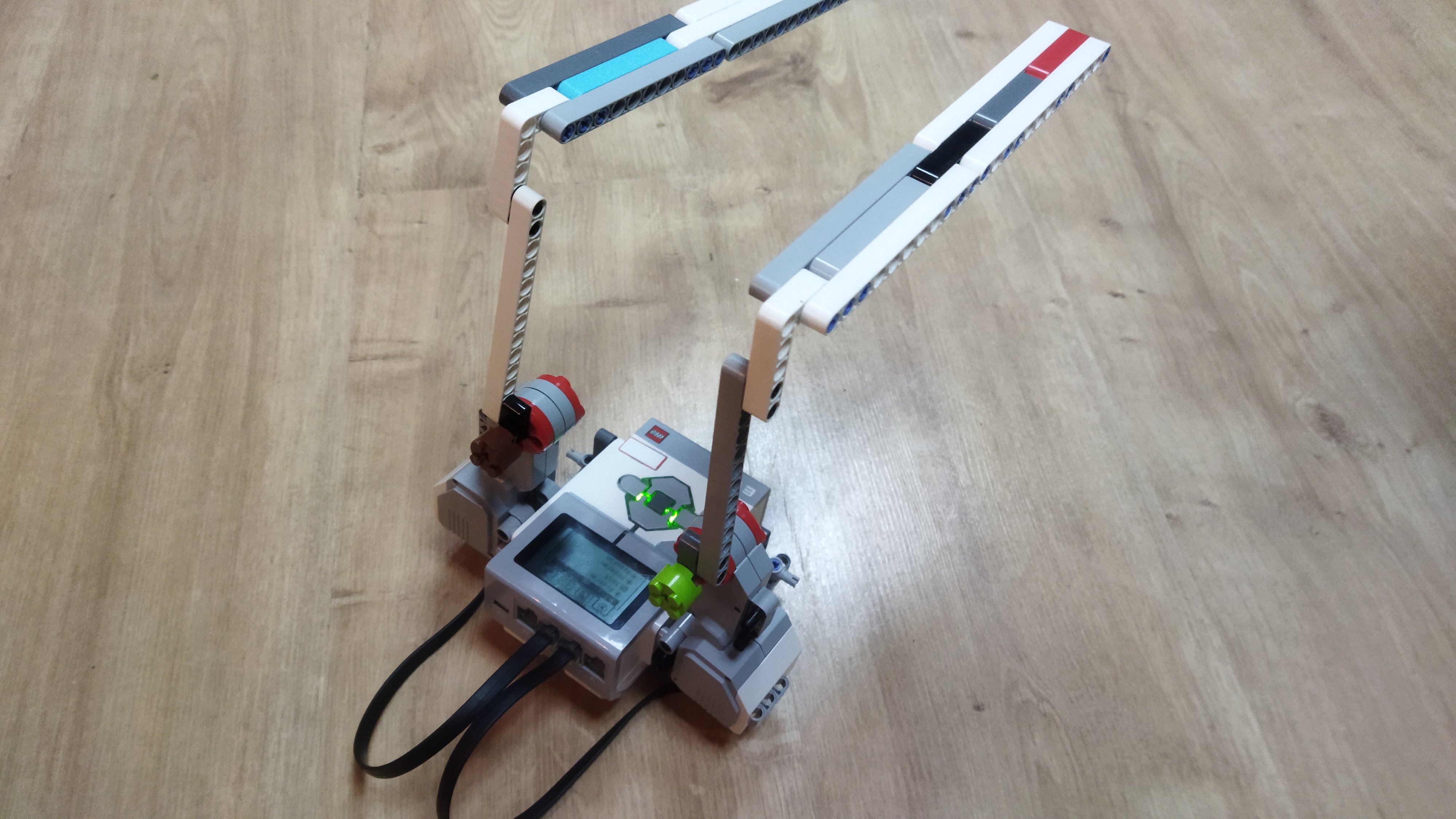 1. Super, naozaj lezie do jednej strany. Teda skôr hmýri sa a tým ho to nejakým zázrakom posúva vpravo. Je to milé. Niečo málo tomu ešte chýba, aby to bol skutočný lezec, ale úloha bola náročná! 2. Za úlohu Lezec získavate 3b. Podarilo sa Vám vytvoriť riešenie s "rukami" robota. Trošku robotovi trvá kým sa posunie, ale to neprekáža. 3. Oceňujem snahu popísať model robota aj viditeľne pred kamerou. Verím, že pri ďalších úlohách sa podarí nájsť aj presnejšie pomenovanie súčiastok. Model bol jednoduchý, ale funkčný. Síce išiel pomaličky, ale išiel, takže fajn :) 4. Pekne ste to vymysleli, škoda len, že ste neskúsili ešte trocha viac vylepšiť ten pohyb.